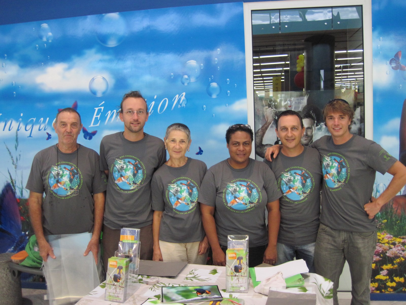 Le samedi 12, nous avons tenu un stand au centre commercial Milénis aux Abymes, où nous avions exposé quelques photos d'oiseaux migrateurs présents en Guadeloupe. Nous y avons distribué des posters et des dépliants sur la Paruline flamboyante.