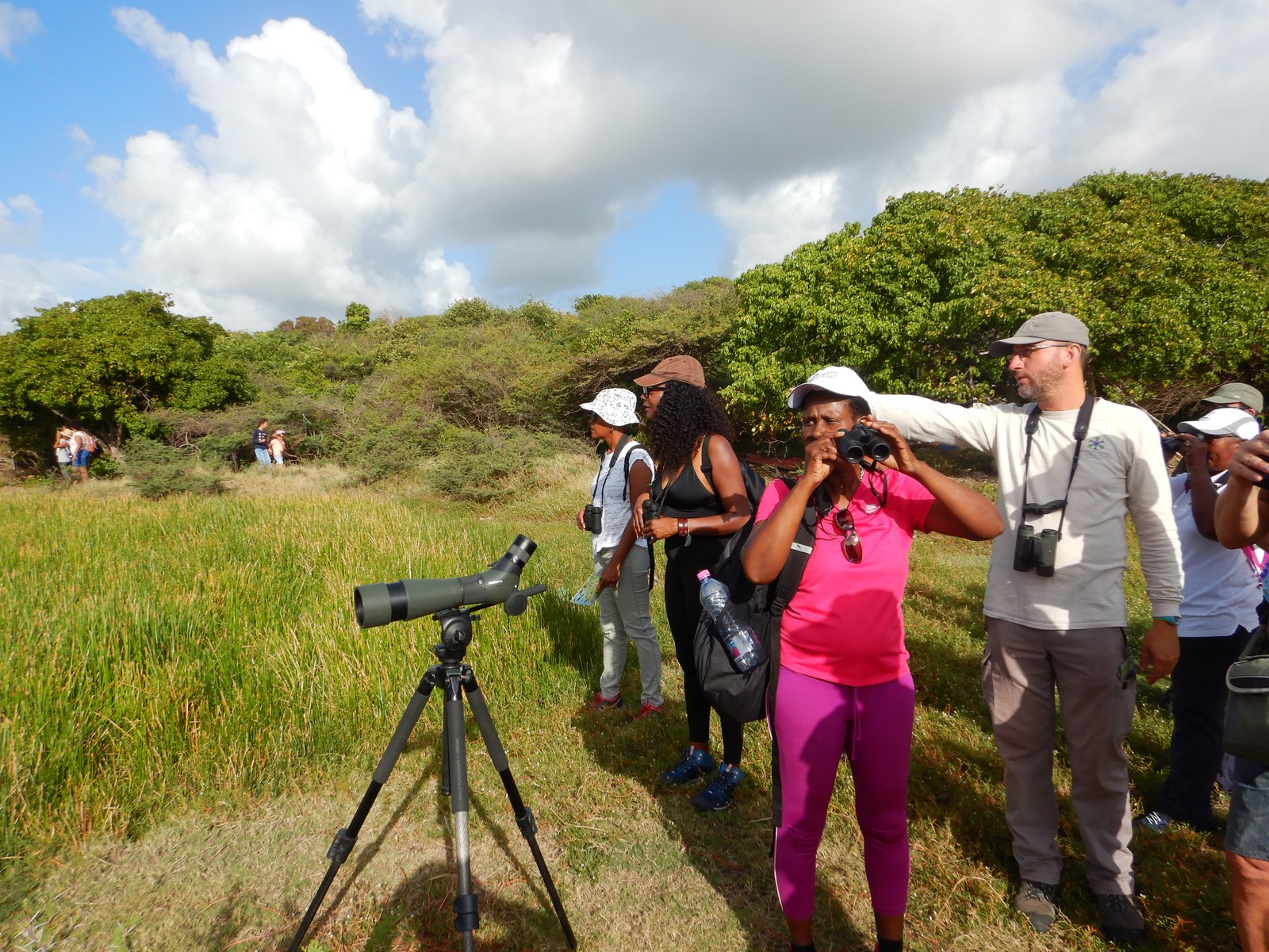Dans le cadre de notre Festival annuel des Oiseaux Endémiques, nous avions organisé une sortie découverte le mercredi 8 mai 2019, sur l'aire de pique-nique de Corossol, route de la Traversée. encore une fois, vous étiez très nombreux au rendez-vous, pour partager cette belle sortie. En effet, nous étions 31 en tout, à chercher les oiseaux endémiques, dès 6h30. Nous avons pu faire de belles observations de plusieurs espèces emblématiques, telles que le Pic de la Guadeloupe, la Paruline caféiette, les martinets, le Trembleur brun, la Grive à pieds jaunes, le Colibri madère, et même le Tyran janeau était présent! Certains ont même aperçu le Martin-pêcheur à ventre roux, hélas trop brièvement.