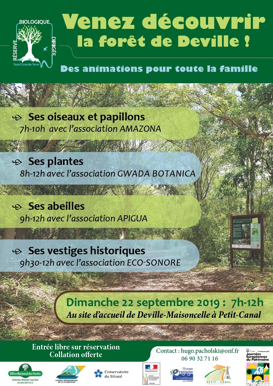 Dans le cadre des journées du patrimoine organisées à Petit-Canal par la commune, l'Office National des Forêts vous invite à découvrir la Réserve Biologique Dirigée du Nord Grande-Terre, et plus particulièrement la forêt de Deville-Maisoncelle :